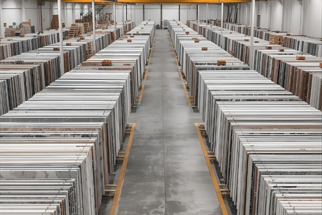 We maintain vast storage godowns where premium quality marble and granite slabs are carefully stocked for easy selection and dispatch.