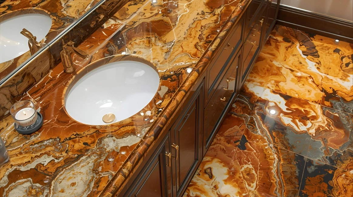 Our Onyx slabs are known for their translucency, elegance, and luxurious appearance. Available in various finishes such as polished and honed, these slabs are ideal for countertops, flooring, and wall cladding. With ready stock in our warehouse, projects can be completed efficiently while ensuring minimal waste.